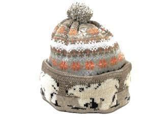 白熊柄に仕立てたニットキャップ。ざっくりと編み上げたローゲージのニットで暖かく、伸縮性に優れています。柔らかな被り心地のアイテムです。